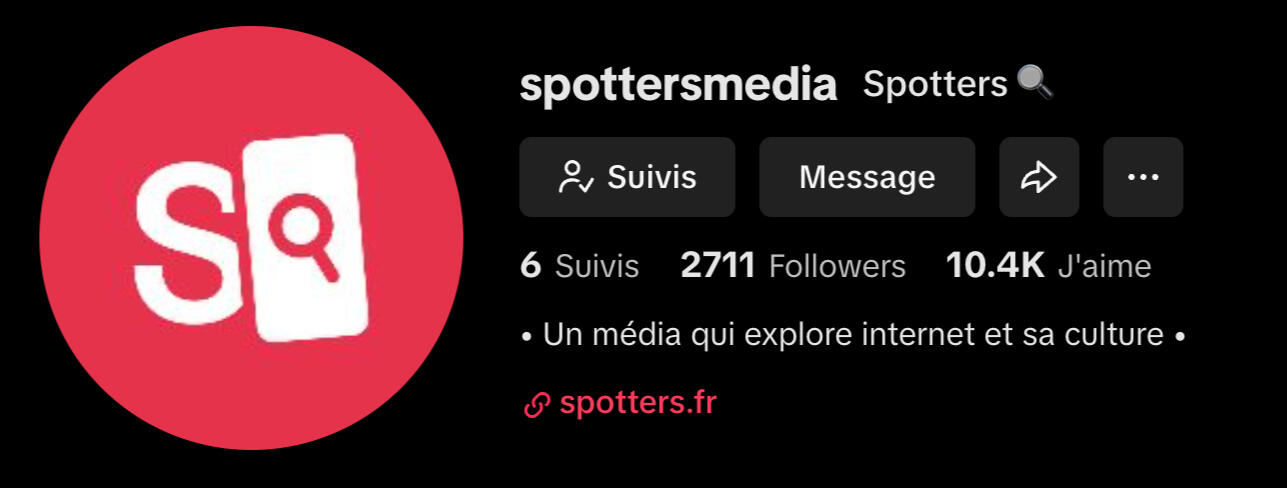 Spotters était un média pureplayer qui traitait de la culture d'internet et des réseaux sociaux, notamment les grandes tendances, les memes et les actualités liées à internet et ses personnalités. Les contenus étaient exclusivement publiés sur les réseaux sociaux.J'ai rejoint Spotters en 2021, moins de 3 semaines après la création du média. J'ai d'abord occupé un poste de bénévole, au sein d'une équipe d'une dizaine de personnes environ.Ensuite, en août 2022, le média a reçu des financements de la part d'une entreprise extérieure, et a donc pu m'embaucher en tant qu'alternante. J'y suis restée 1 an, jusqu'en août 2023.